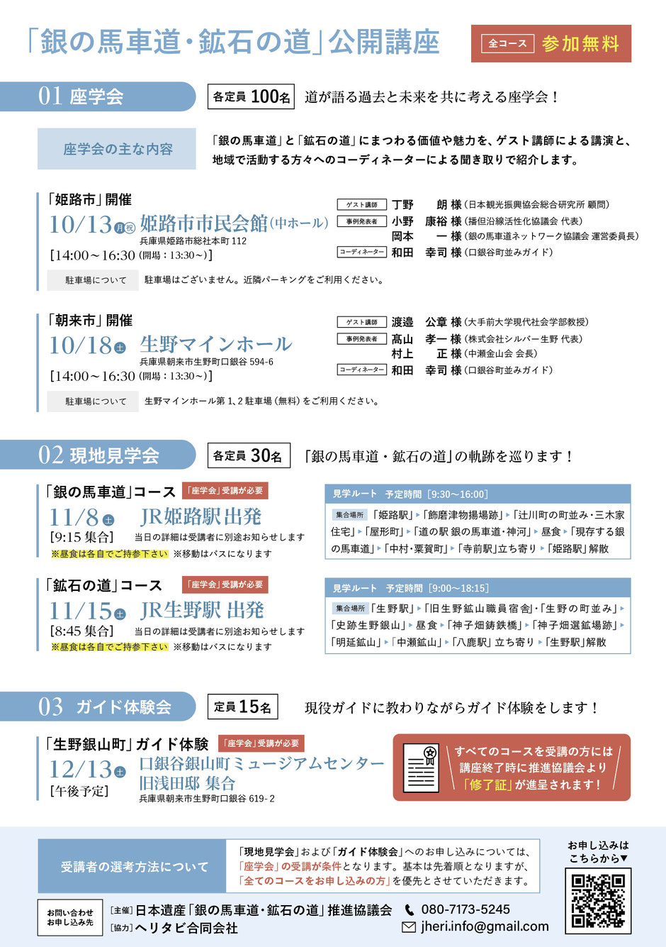 「現地見学会」および「ガイド体験会」へのお申し込みについては「座学会」への受講が条件となります。